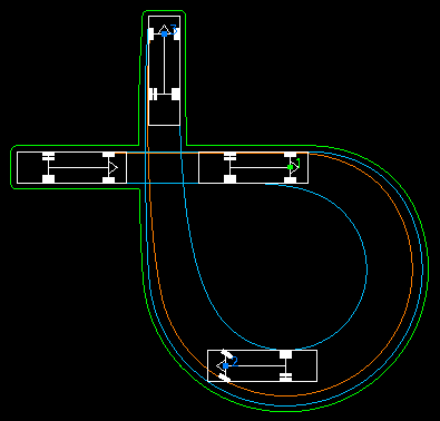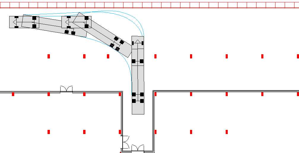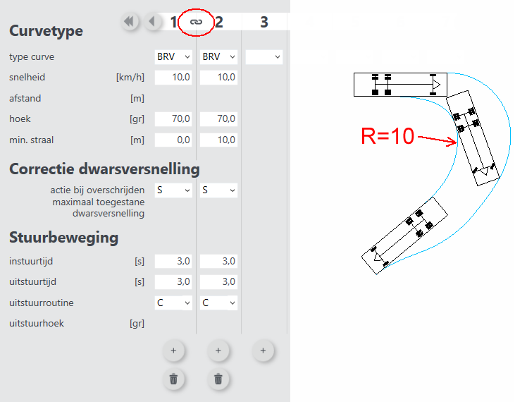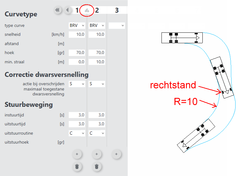 Wanneer de straal die het voertuig uiteindelijk maakt toch nog te klein/krap is kan bij de Trajectgegevens een grotere/wijdere straal worden opgegeven: het voertuig zal in die curve geen krappere straal rijden.