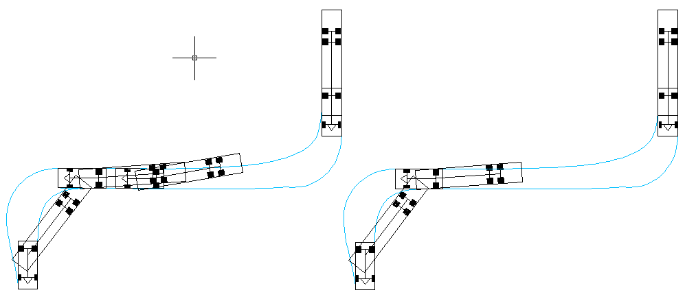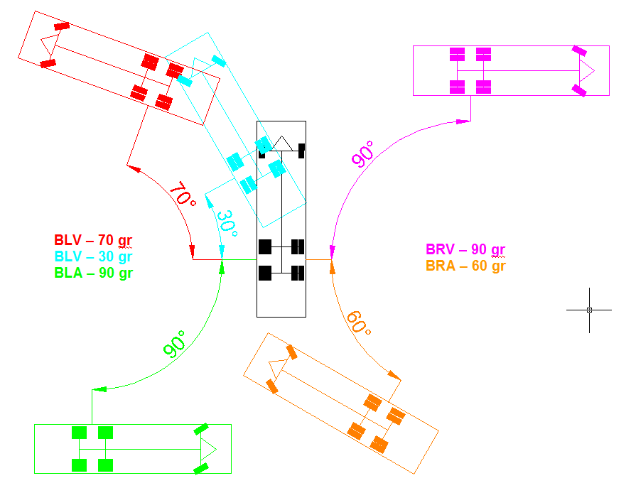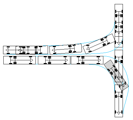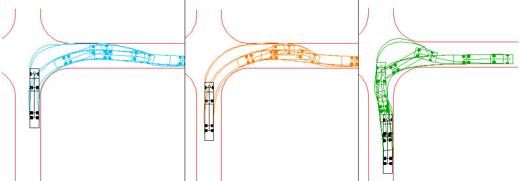 - De resultaten van de berekeningen (de rijcurves en voertuig posities) zijn direct in de actieve tekening beschikbaar en kunnen als normale grafische elementen verder verwerkt worden.