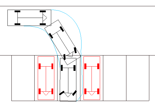 Het rekenprogramma voert indien nodig correcties uit op de minimale straal die het voertuig rijdt en stuurtijden op basis van de minimale draaicirkel van het voertuig, dwarsversnelling en de te maken bocht (hoekverdraaiing).