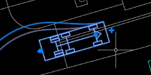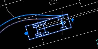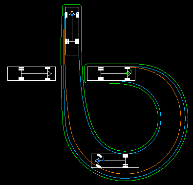 Ten eerste door een traject-definitie te laten genereren met behulp van bestaande (lineaire) geometrie in de tekening. Als de knop "Selecteer traject in tekening" wordt aangeklikt dan kan een lineair element worden aangewezen in de tekening. Deze geometrie wordt vervolgens vertaald naar CurSim trajectsegmenten en op het begin van het geselecteerde lineaire element zal de startlocatie cell (symbool) worden geplaatst. Dit is de startpositie voor de simulatie. | |