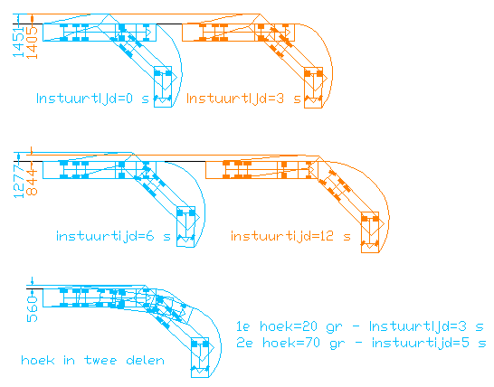 wanneer het rekenprogramma de straal vergroot i.v.m. dwarsversnelling wordt de stuurtijd evenredig verlaagd. Dit is gebleken uit praktijkproeven.