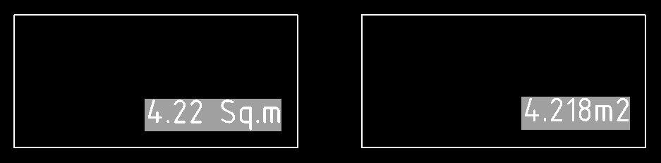 De grijze achtergrond achter de tekst is een aanduiding dat het hier om fields gaat. Een field is gekoppeld aan een element (in dit geval is ieder field gekoppeld aan een rechthoek). Als de oppervlakte van de rechthoek gewijzigd wordt, dan wordt gelijktijdig ook de gemeten oppervlakte aangepast. De grijze achtergrond wordt niet geplot, maar kan wel uitgezet worden bij de View Attributes.
