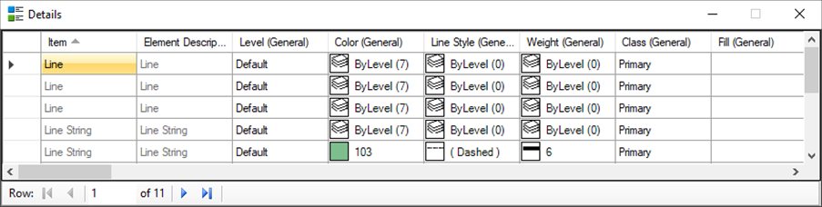 Met het scherm ‘Details’ kun je de eigenschappen van allerlei tekening-onderdelen bekijken en aanpassen (zoals ook in Properties kan), maar je kunt ook de eigenschappen van tekening-elementen met elkaar vergelijken.