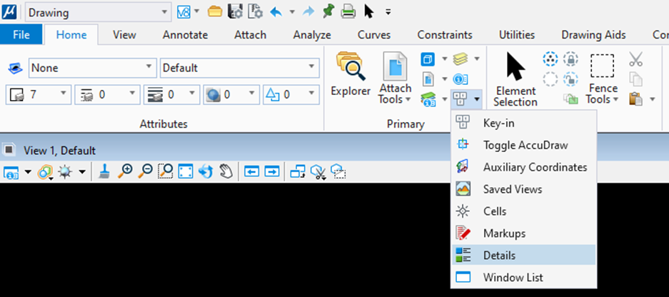 Je vindt ‘Details’ onder het uitklapmenu in de rechter onderhoek van de Primary group op de Home-tab: