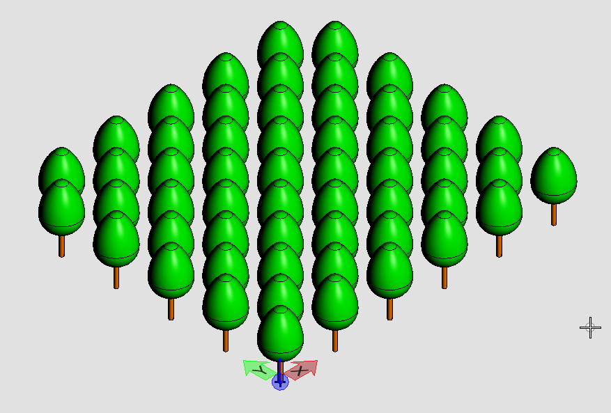Teken of verzamel eerst de 3D-elementen die je wil gebruiken in je lijnstijlen. Gebruik de 3D-elementen in je Point-element en combineer met andere Points of Strokes. Hieronder zie je een voorbeeld van een lijnstijl van een bomenrij: