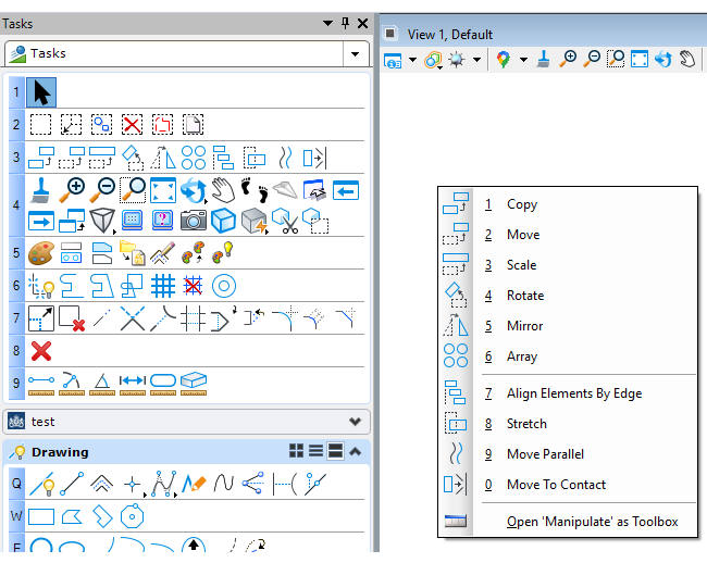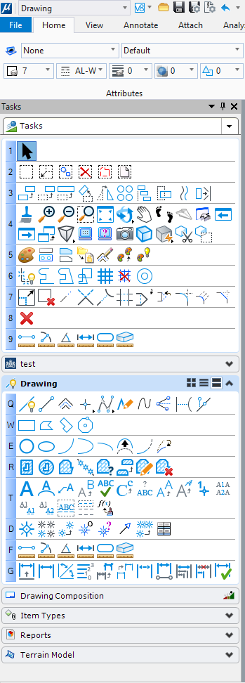 Veel tekenaar die al lang met MicroStation werken, waren vanuit v8i gewend om met letter- en cijfercombinaties commando's te activeren. De te gebruiken letters en cijfers kwamen voort uit het task-menu van v8i: