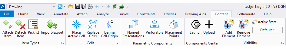 Het Component Center is niet nieuw, het bestaat al sinds MicroStation CONNECT Edition en is een cell-bibliotheek in de Cloud. De verandering is voor een deel esthetisch, zowel het icoon voor het components center als het scherm voor het raadplegen van de cell-bibliotheek is aangepast: