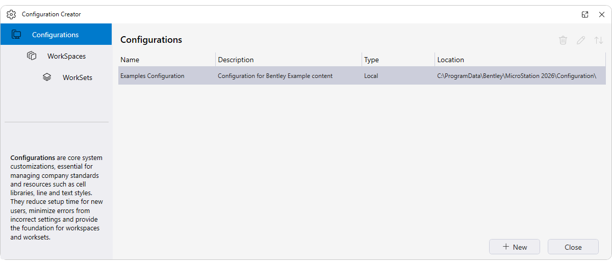 Met deze knop open je een venster waarin je Configurations, Workspaces en Worksets kunt maken en beheren: