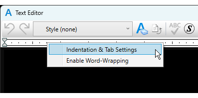 Wist je trouwens dat je ook tabs en inspringingen kunt toevoegen in de Text Editor? Klik maar eens met je rechter muisknop op de witte regel boven het tekst invoer scherm: