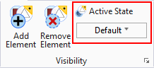 Je ziet dat ik dus binnen dit scherm de Visibility States kan toepassen op de tekening, maar dat kan ook vanuit de Ribbon. Als je de optie 'Active State' aanzet dan kun je in het uitklapveld eronder een Visibility State selecteren en dan wordt die getoond in de tekening: