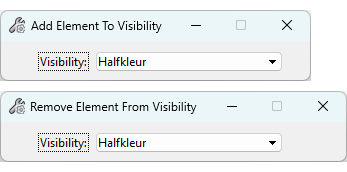 Bij de knoppen voor het toevoegen van elementen (Add Element) en verwijderen (Remove Element) van elementen uit de Visibility State verschijnt een venster waarin je de Visibility State kunt kiezen en dan elementen kan selecteren: