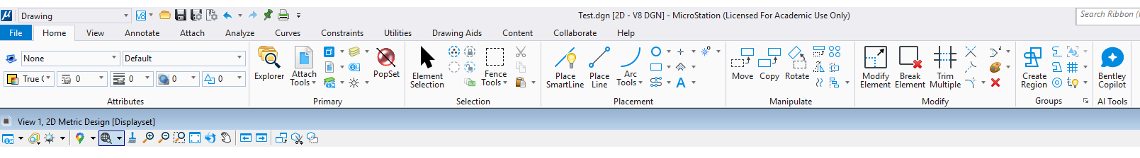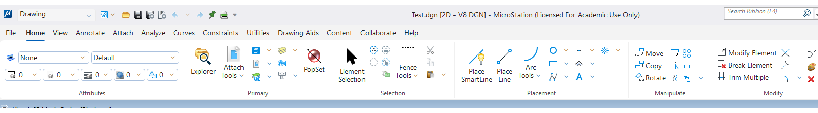 Na het wijzigen van deze instelling moet je wel even MicroStation opnieuw opstarten om het goed te kunnen zien. Hieronder zie je de Ribbon zoals die er normaal gesproken uit ziet: