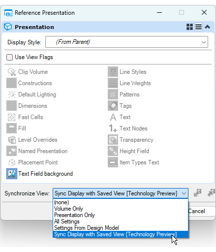 6. Zet de instelling bij de Presentation van je Reference nu onderin op 'Sync Display with Saved View':