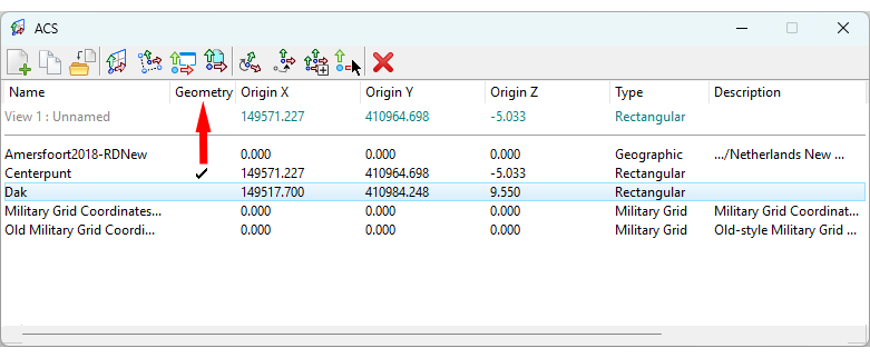 Er is een extra kolom toegevoegd aan het overzichtsscherm van de ACS (Auxillary Coordinate System):