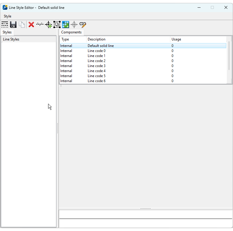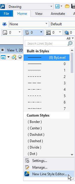 Maar er is nu een nieuwe Line Style Editor die lijnstijlen direct in je tekening (dgn) of in je dgnlib kan maken. Je vindt deze nieuwe optie in het pulldownmenu van de linestyles: