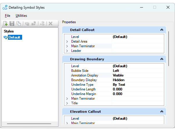 Klik op de 'Default'-stijl en je ziet de eigenschappen van die 'Default Detailing Symbol Style'. Zet de 'Annotation Display' op 'Hidden' en sla de wijziging op.